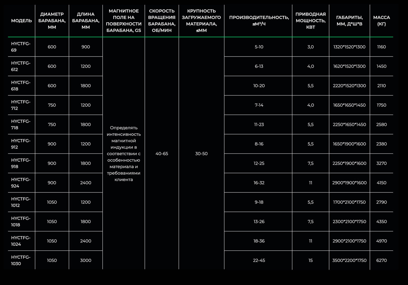 Барабанный магнитный сепаратор серии HYCTCG в основном применяется для непрерывно автоматического устранения или выбора магнитных веществ из сухого тонкого порошкового материала. Магнитное поле на поверхности барабана до 12000Gs.