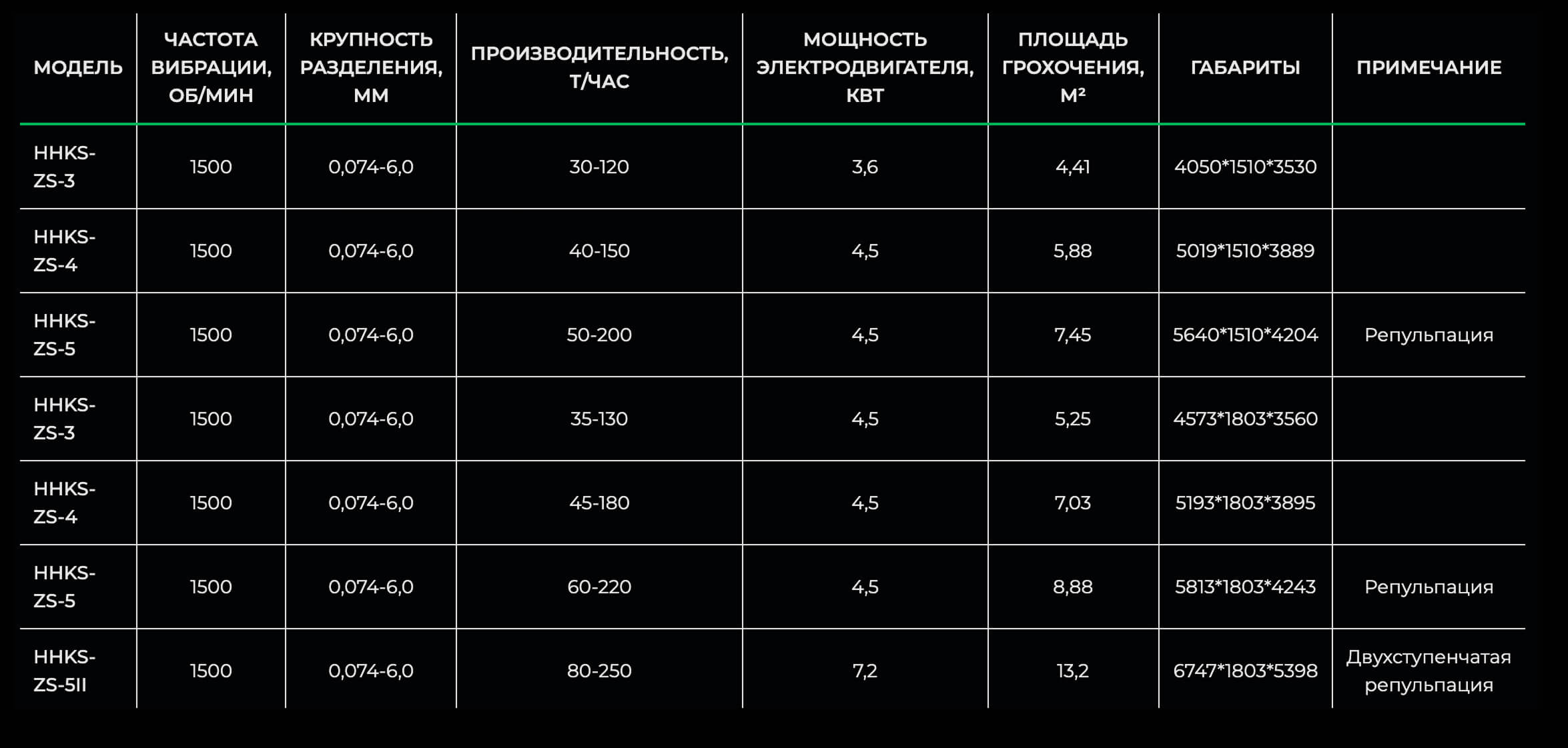Большая производительность, эффективность грохочения составляет более 80%;